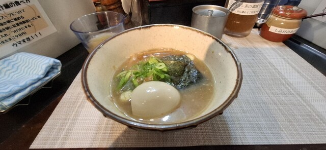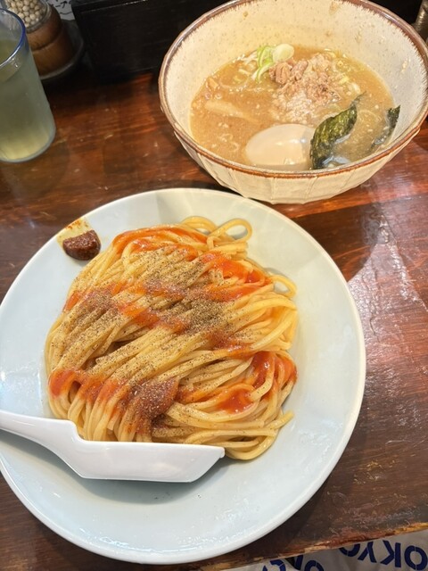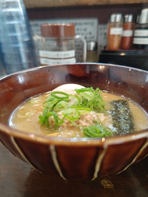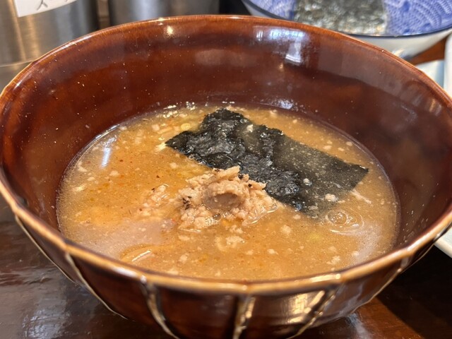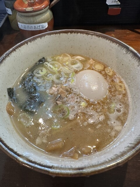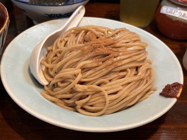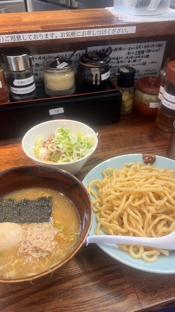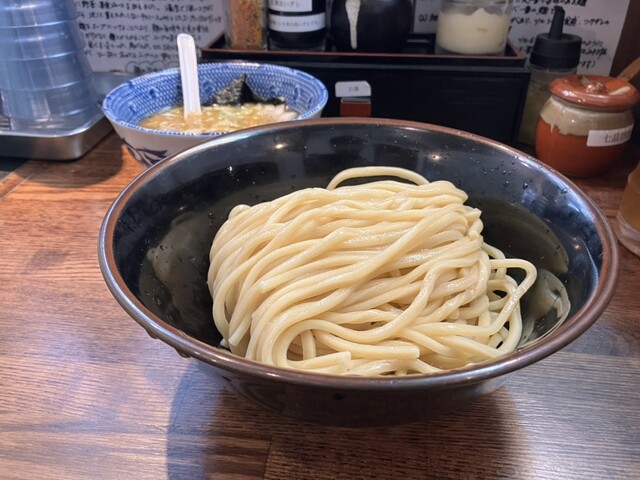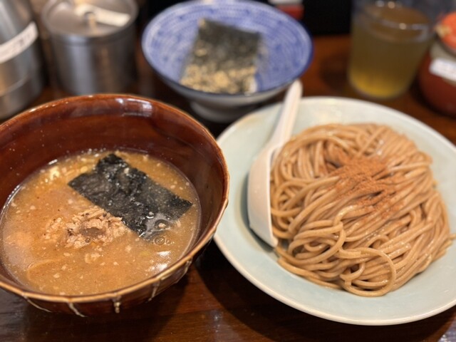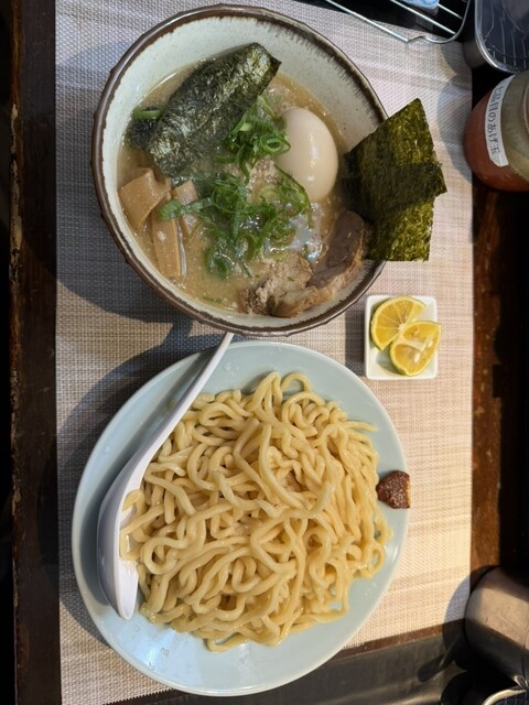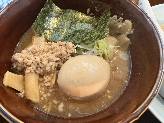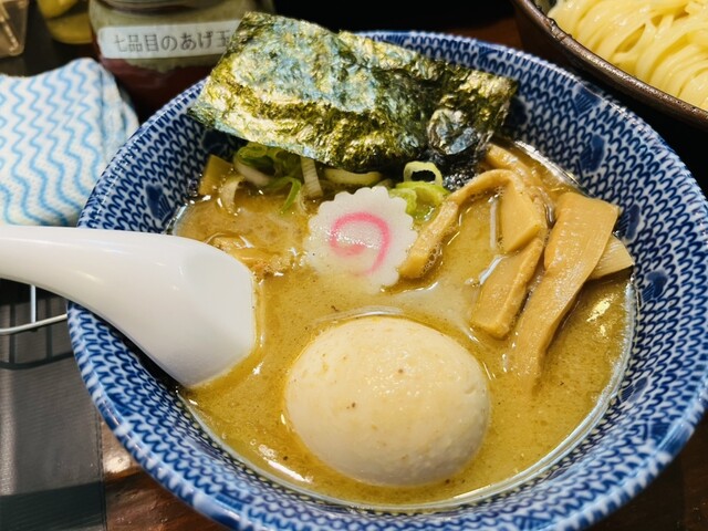 国分寺に住んでいた知人の紹介で、平日夜に訪問。閉店間際で客はまばら。つけ麺普通盛りを注文。麺はおすすめの平打ち麺を選択。麺がつるつるで味わいあり美味しい。熱々のつけ汁は和風の香りがよく、メンマ、小さく...