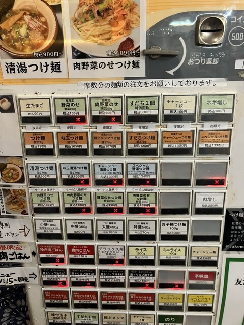 お店に行くと麺量の一覧が載っていて券売機にも表示がありました