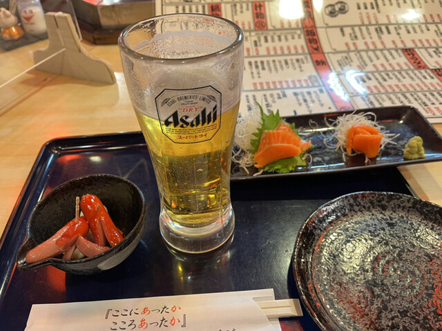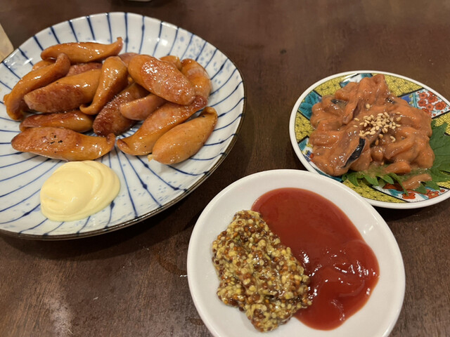 先客は3組4人。カウンター席に座ってビールのジョッキ生(中)(550円)を頼む。確かに函館駅前の今はもう開発されてしまった一帯にあった店みたいだと思えなくもない。居心地は良い。お通しはたこウィン...
