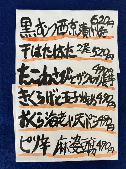 国分寺駅前南口の魚介や肉、野菜を豊富に取り揃えた「ろばた焼」です。日替わりのメニュー有!