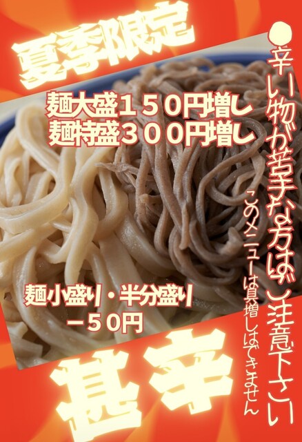 祝日月曜日の14時頃、1組15分程で入店しました。 ・蕎麦と武蔵野うどんは合盛り可で、蕎麦は必須です!少し太めで少し固め、蕎麦粉を強く味わえとっても好みでした!蕎麦粉を味わい... 詳細を見る