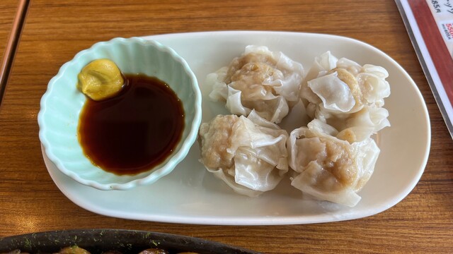 肉々しい美味しいしゅうまい。まさかたこ焼き屋さんでいただけるとは。。。