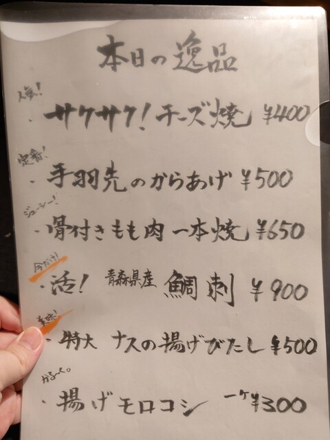 この他に本日の逸品があり、仕入れにより色々と変わるみたいです。