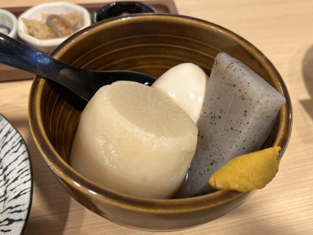 カウンター席に座る。生ビールを頼んで、そのあとの注文はQRコードを読んでスマホから。BACHIYAのおでんの大根(250円)、玉子(200円)、ちくわぶ(160円)、こんにゃく(120円)と、本日の生牡蠣の北海道・厚岸(800円)と兵庫県・坂越・赤穂クリスタルブラン(580円...