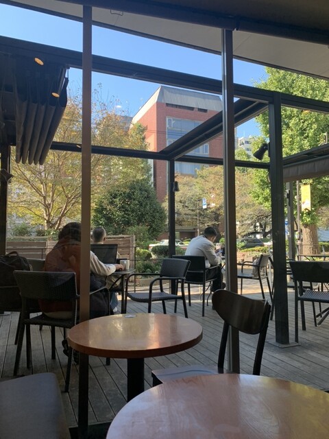 こちらのスタバは、ワンコ連れに人気で、特に朝のテラス席は、ほとんどがワンコ連れです。