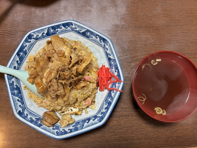 味の感想:濃いめの炒飯に焼肉が乗っている。