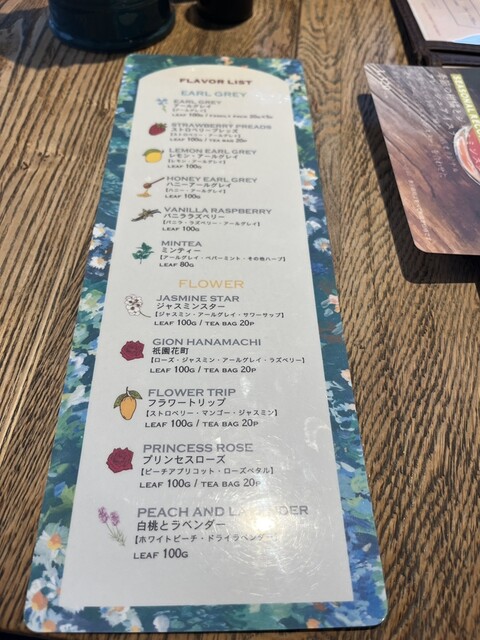 お茶のお店なだけあって、種類が色々ありました。ホットティーだけでなく、ミルクティーやソーダもありました。ワンドリンク制で、お茶はセットの78...