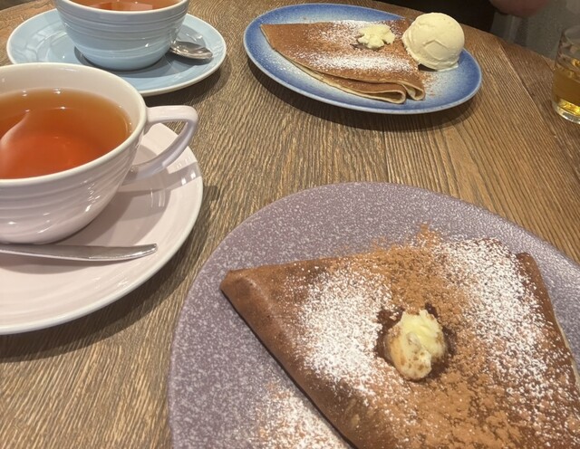 バニラアイス乗せのクレープと甘めのティーをチョイス。とにかくお茶の種類が豊富なのが嬉しいです。...