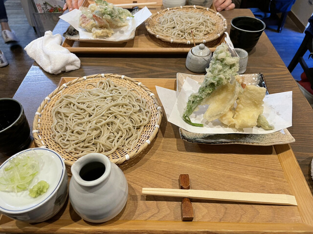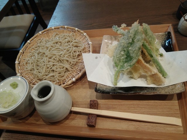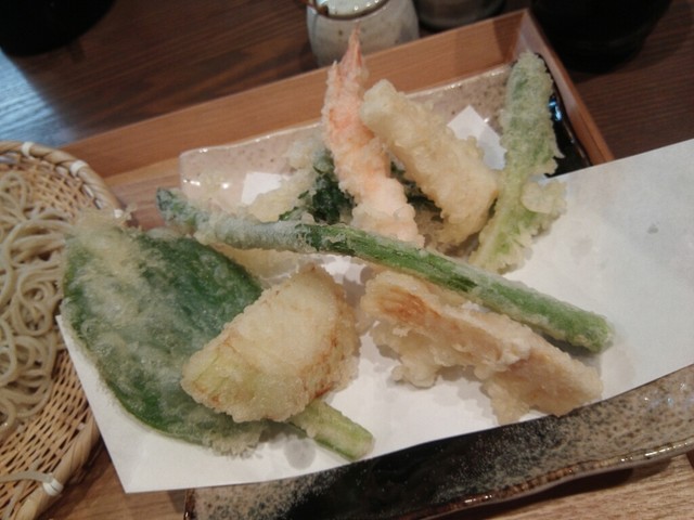 やがて出てきた天ぷらとそば。そばは硬くてのど越しが良くてまあまあだった...