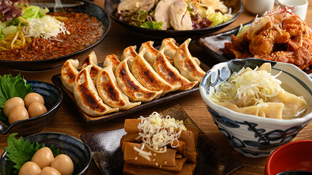 名物「元祖肉汁焼餃子」は独自に開発した特製の皮と、厳選豚でつくるこだわりの餃子です。