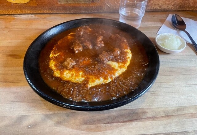 カレーが食べたくなり、調べてみたところこのお店が出てきたので行くことにしました。外に何人か並んでおり、メニューも美味しいんだろうなと思いました!ビーフカレーを頼みましたが、100円プラスでオムライス風...