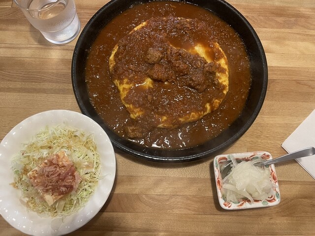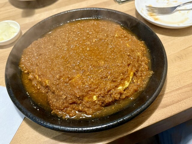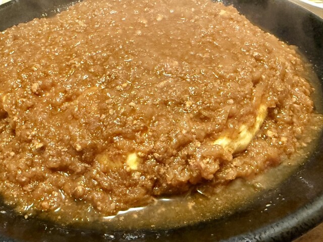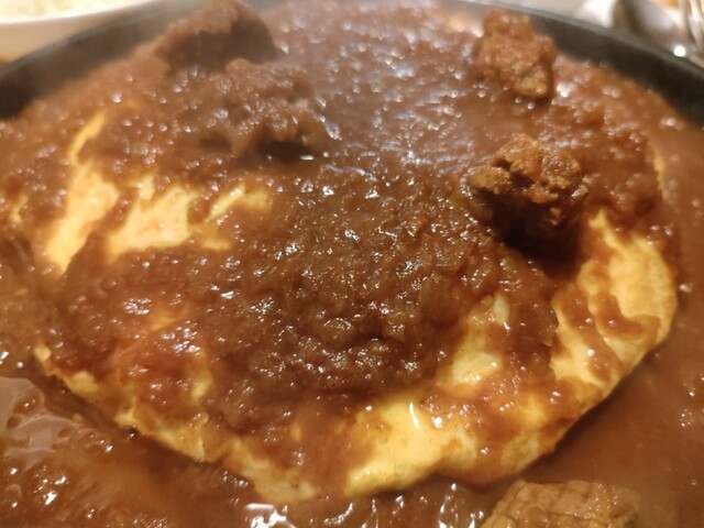 頼んだのはキーマオムライスで、オムがキーマで隠れてるヤツでした。
