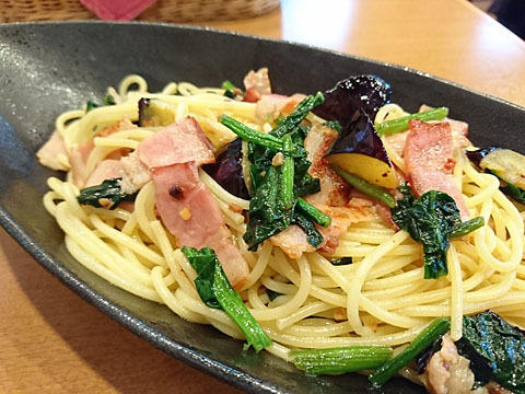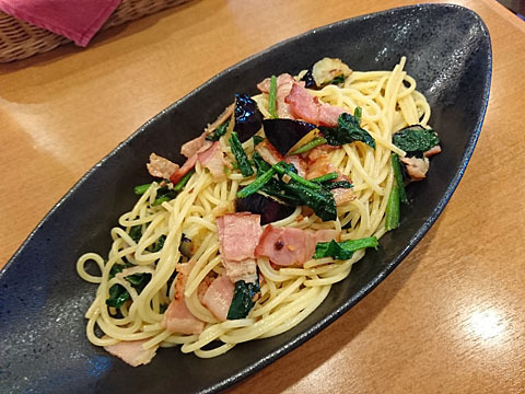 今日のお昼は近所飯(まだ模索中) の洋食(イタリアン)に… 初訪問になります。 場所は西調布の駅を降りて南に伸びてる道を少し進んだ右側にあります。 お昼時にはランチメニューがあり A.B.Cから選べます。 それぞれの内容はイーゼル黒板に 書いてあります…が写真は撮り忘れました…) Bのパスタランチをオーダー (麺250gは茹で上げの重量なので乾燥で125gくらい?かな...