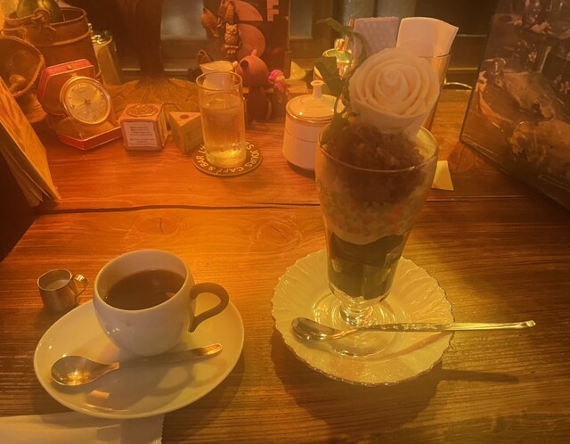 店内はまるで薄暗いランプと木の温もりを感じる静かな抜群の雰囲気。まるで異世界に来たかのよう。古時計のカチカチ鳴る音が時間がなんとも心地よ...