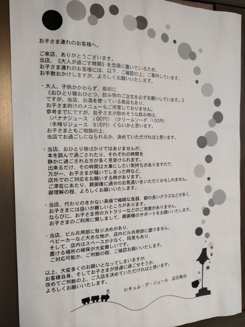 平日14:20、ふらっと訪問。扉に貼られた長文の注意書き「お子さま連れのお客様へ(要約:ワンドリンク制。静かにお願いね)」に躊躇するものの、よく読めば常識的なお願いのみで、むしろ大人の客にとってはあり...