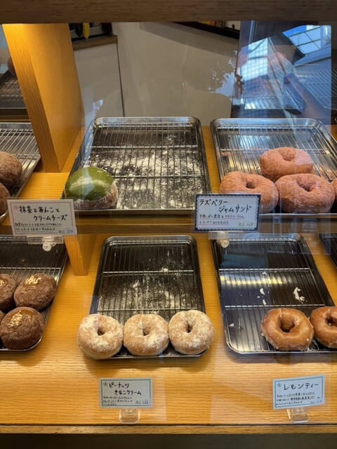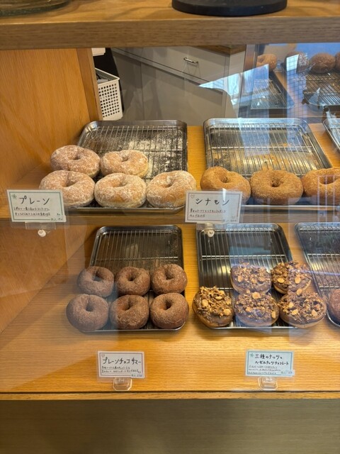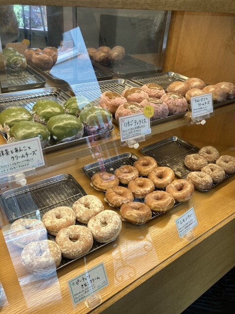どのドーナツも油脂感少なく、まるまるしていて美しいです。14時頃伺い先客は無く、ゆっくり選べました!プレーン、ごまあんときなこドーナツ、いちごティラミス、さつまいものモンブラン、いちじくとクリームチー...