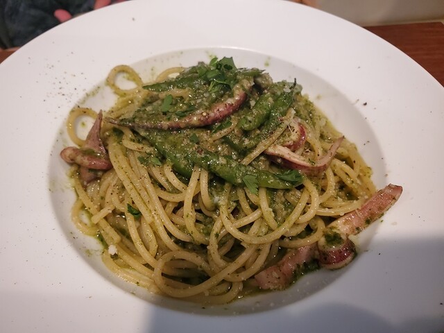 岩手県普代村出身のシェフが普代村から直送する「熟成魚」「三元豚 佐助」などの特色のある食材をメインに打ち出すイタリアンのお店。5種はあるパスタランチで直球勝負です。