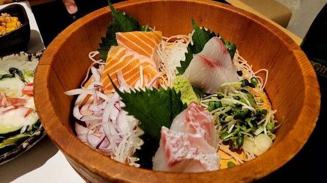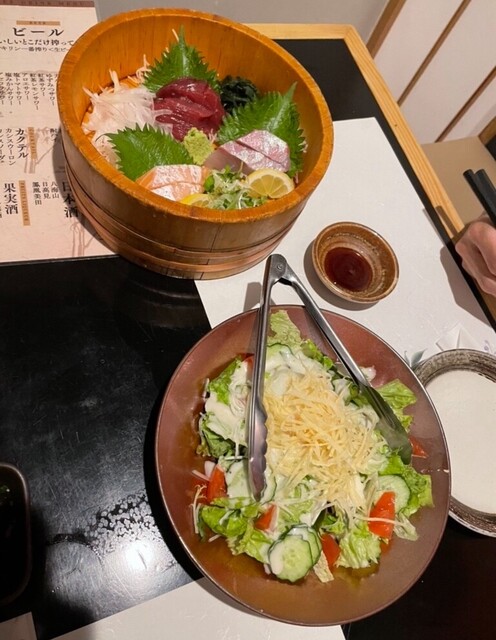 彩り野菜、刺身美味しかった。半個室なので隣同士の音が丸聞こえでとてもうるさかったが許せる範囲です。人がたくさんいる時は暑いぐらいでしたがいなくなると丁度良くなった。呼び出しベルがあ... 詳細を見る