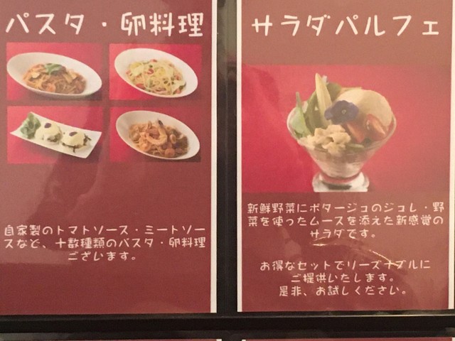パスタ・卵料理をはじめ、おしゃれな新感覚サラダ「サラダパルフェ」や、店内手作りのカクテルグラスで楽しむデザートをご用意しております。