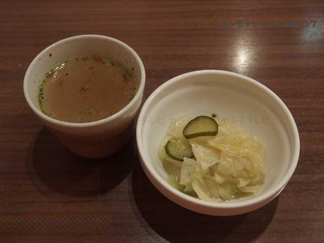 コンソメスープと酢が染みたキャベツ小鉢もあって、いい内容でした。