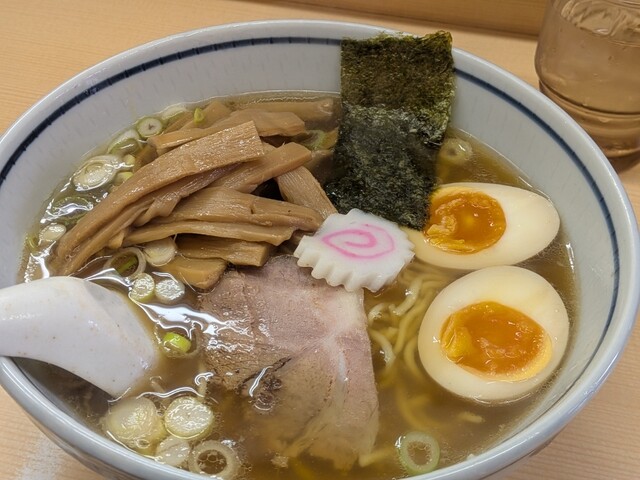 初訪問です。 最近、仕事で良く府中にきてます。 目星をつけさせていただいた同店。 13:15 ちょうど私で満席くらい。 ※出るときは5名ほど並んでました。 味玉ラーメン、メンマ ポチっ 990円今時だとかなり安いですね。 5分ほどで着丼、御対麺。 スープを一口…すすす... 詳細を見る