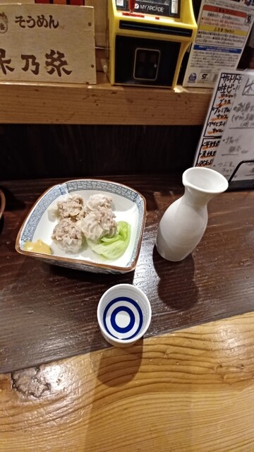 つまみに豚バラなんこつ大根煮、焼売、冷しトマト。