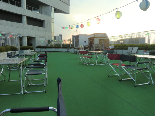 ※6月中旬くらいから、8月31日までの夏季限定ビヤガーデン。運営は、3階のレストラン「サングリア MUGI」。 |