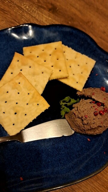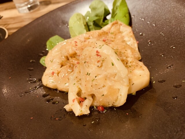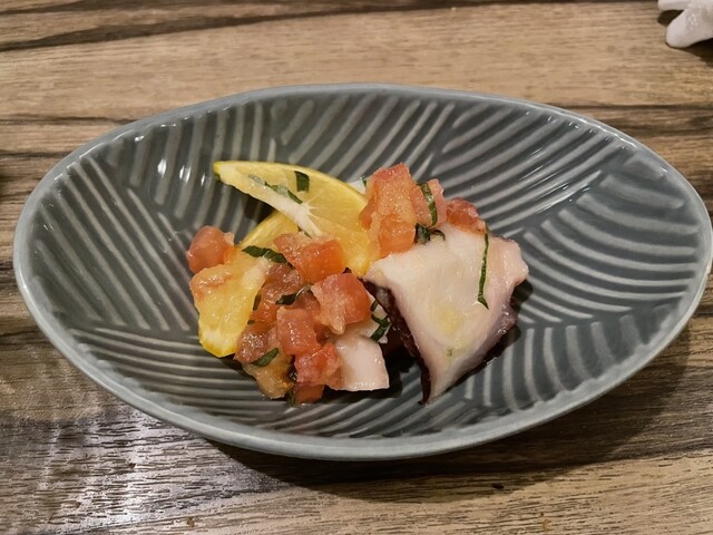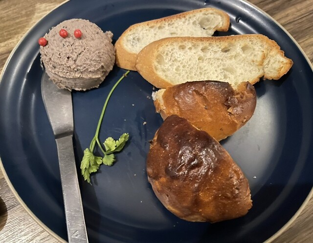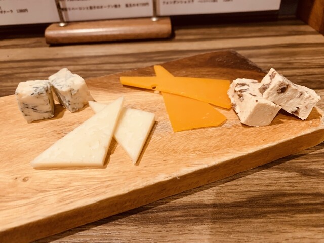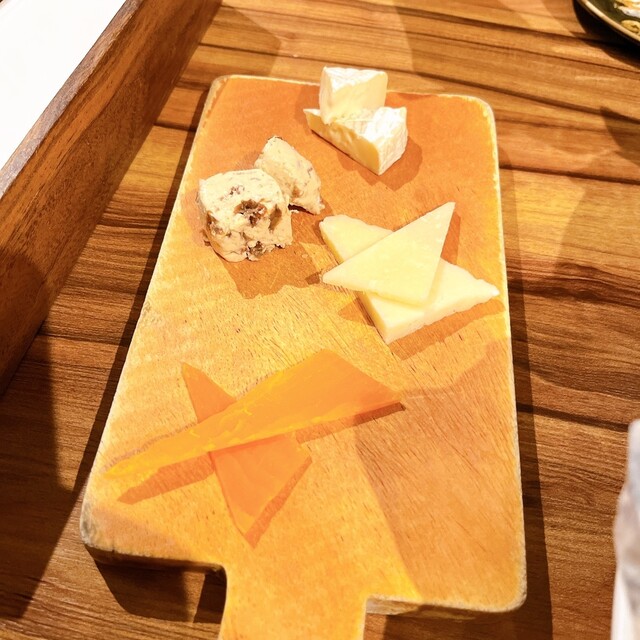 お通しは6種類のチーズから1人2種を選べるスタイル。ペコリーノ、ゴルゴンゾーラ、カマンベール、ラムレーズンクリームをチョイスし、香りのクセと格闘しつつもワインが進みました。