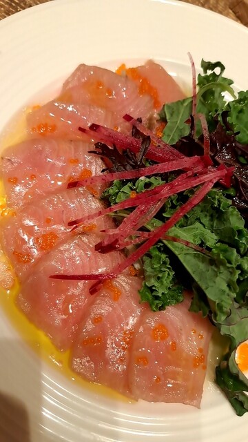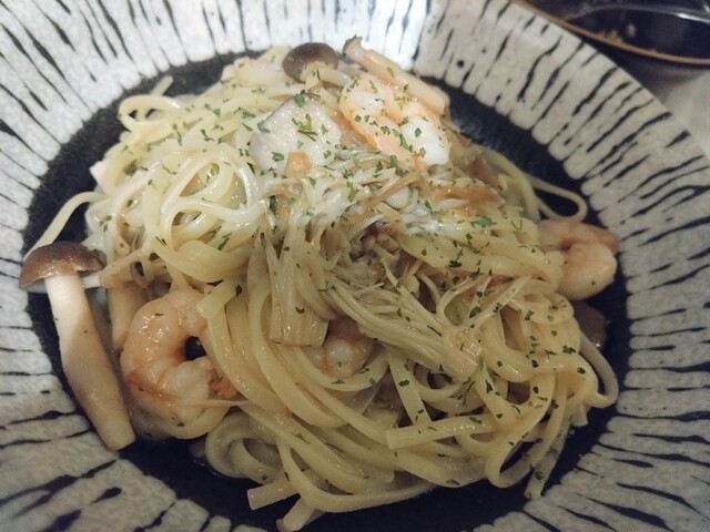 秋の味覚を贅沢に盛り込んだ全7品のフルコース。 まずは本日の前菜3種盛り合わせと、たっぷりキノコとベーコンを使ったシーザーサラダで秋の香りを楽しんでいただきます。続く一皿は、サーモンのカルパッチョをトマト&ガーリックソースでさっぱりと。温菜には、ジューシーな牛ステーキとマッシュルームをアヒージョ仕立てでご用意し、バケットとともにお楽しみください。 パスタは旬の秋刀魚を贅沢に使ったラグーソース。メインには三元豚をじっくり低温調理し、香ばしいハーブソテーで仕上げました。食後は本日のデザートで、最後まで秋の余韻をご堪能いただけます。