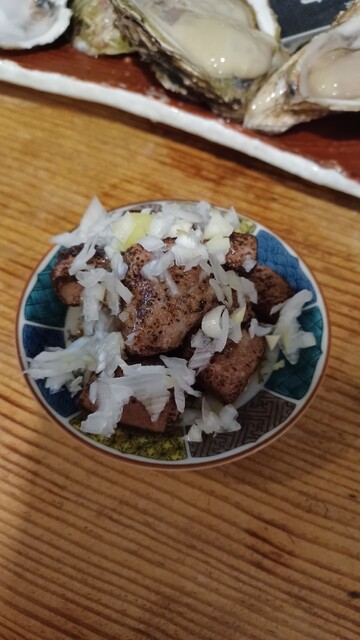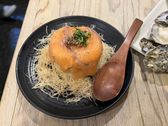 まずは看板メニューの生牡蠣から。身がぷっくりとしていてクリーミー、クセもなく、まさに旬の味。日本酒との相性が抜群でした。...