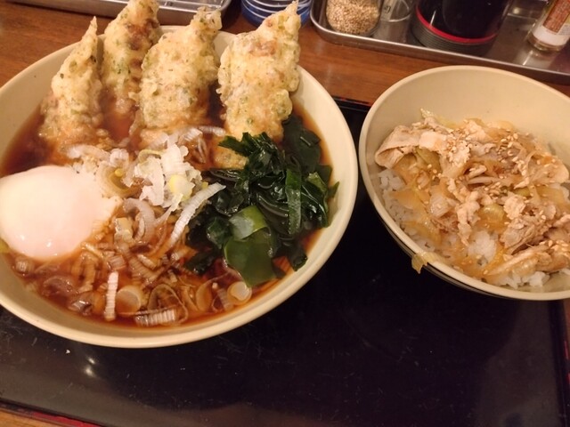 かき揚げ丼、ミニ蕎麦(TP 温玉・海苔)