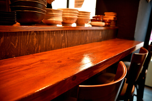 木目と黒を基調としたシックな店内で、ゆったりお過ごし頂けます。