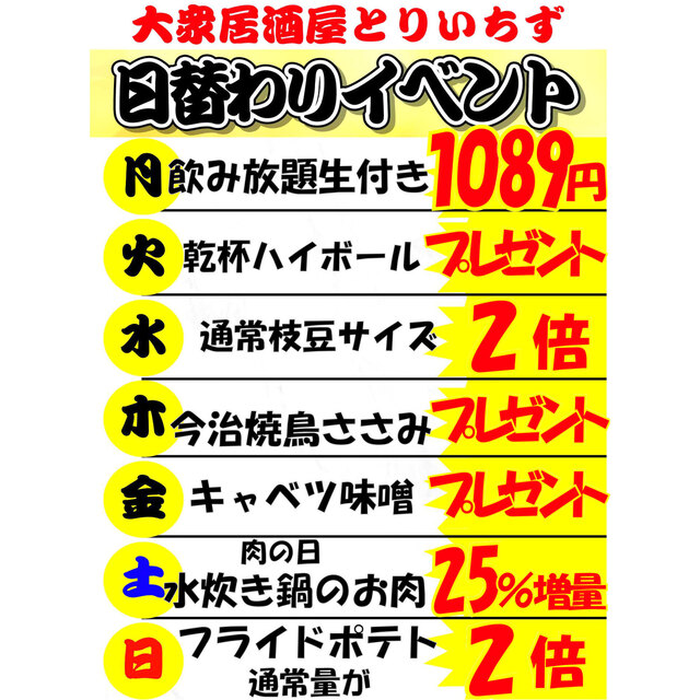 | ドリンク | 日本酒あり、焼酎あり、ワインあり、カクテルあり |