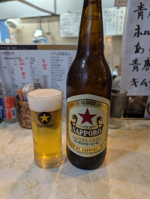 お店は、狛江駅から南側のローターのすぐのところにあり、外観内観と年季の入った良い感じの焼き鳥屋さんの感じで、カウンターメインでテーブル席がちょっとある感じでした。