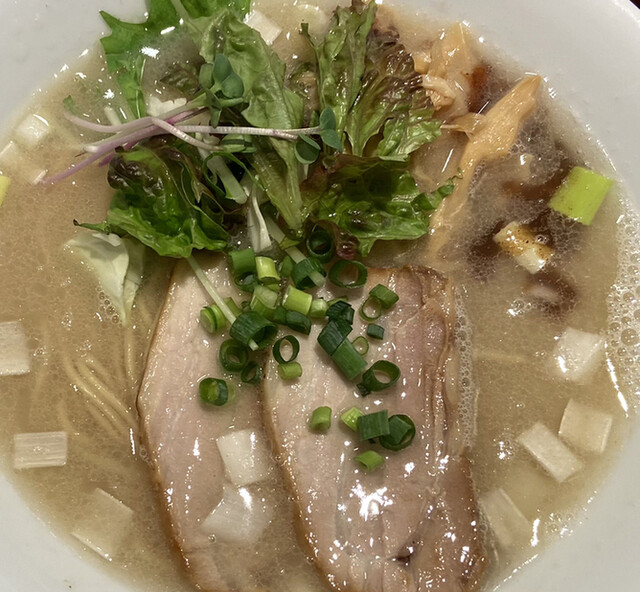 あっさりとした魚介と、深い味わいの豚骨を炊き合わせた重層的な味わい。