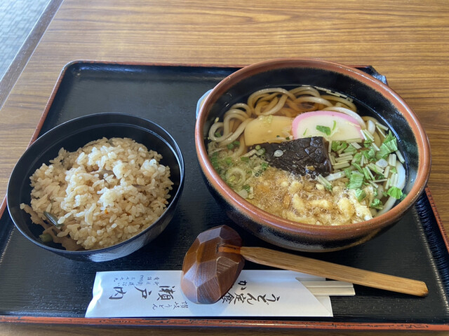 かやくうどんは400円です。いつも迷いますが、結局「うどん定食」のうどん大盛を注文してしまいます。