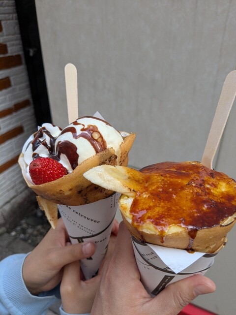ゴールデンウィーク2日目、15:45頃来店。 ブリュレクレープが気になって(^_^) ・クリームブリュレクレープ ・いちごチョコアイス 注文してから生地焼いてくれます。... 詳細を見る