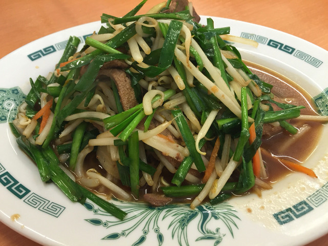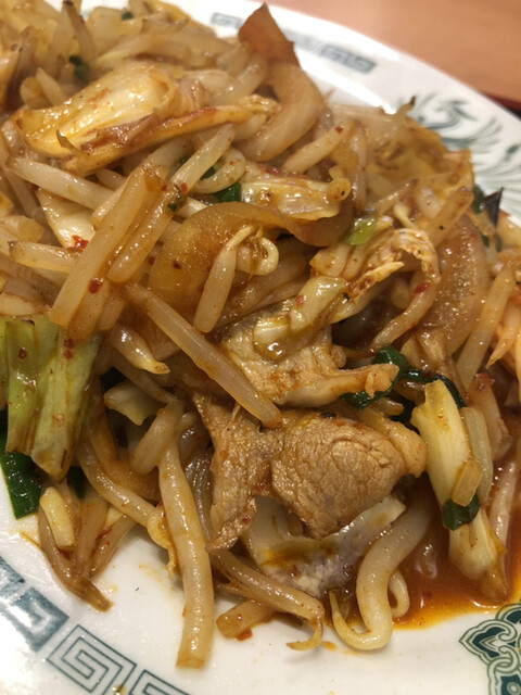 日高屋では普段頻繁にラーメンを注文させていただくのですが、今日はバクダン炒めを注文。ピリ辛のキムチと豚肉の相性抜群。お酒が進みそうな一品ですね。