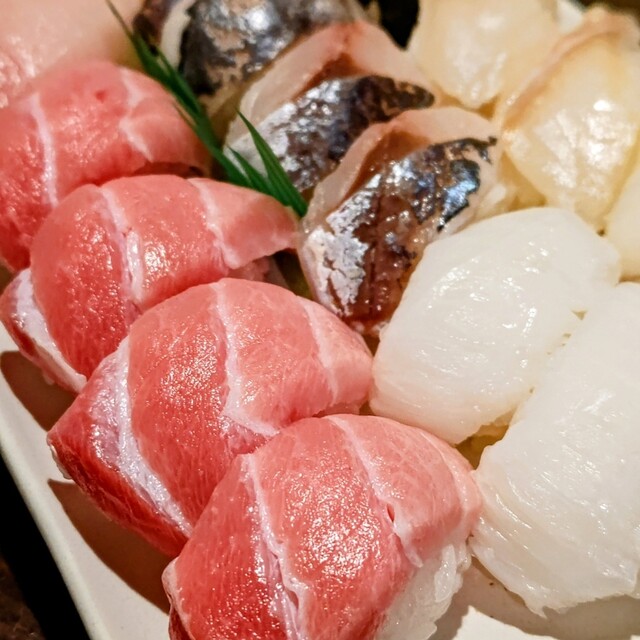 蒸し海老 / イカ / 小肌 / 玉子 / 軍艦カニ / 赤魚 / ままかり / たこ¥46から