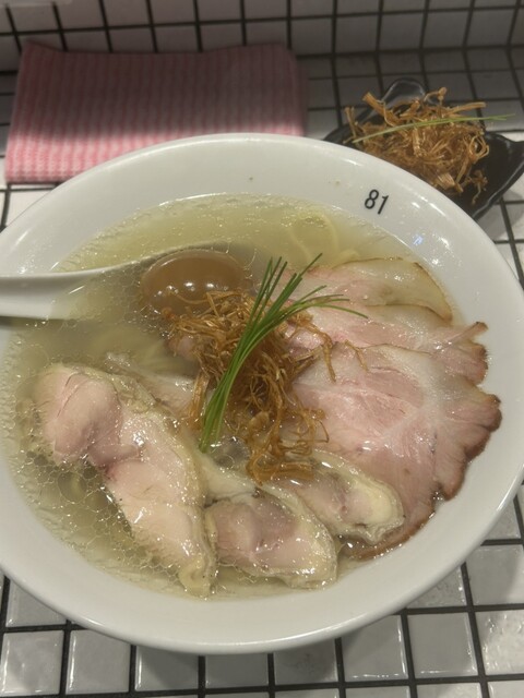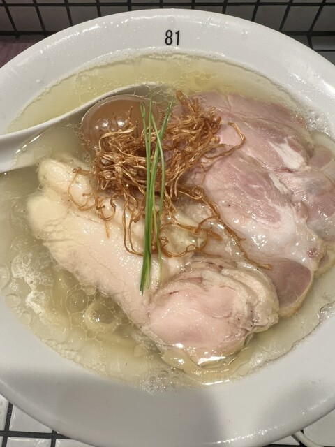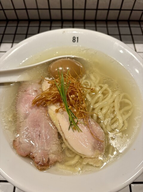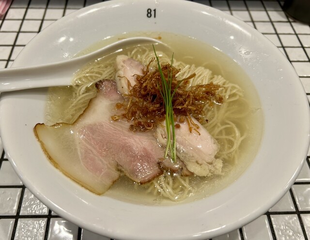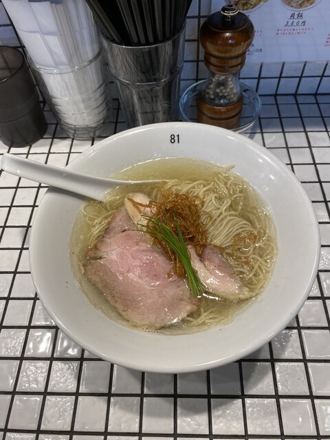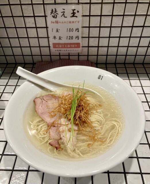 鶏•煮干し•貝出汁のあっさりめの塩味ですが旨味があって美味し...