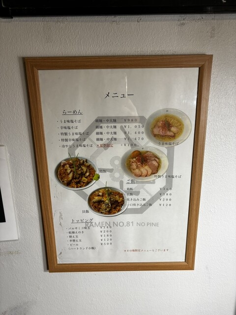 昭和レトロな雰囲気が残る路地裏を歩いていると、ひっそりと佇む塩ラーメン専門店「81番」さん。