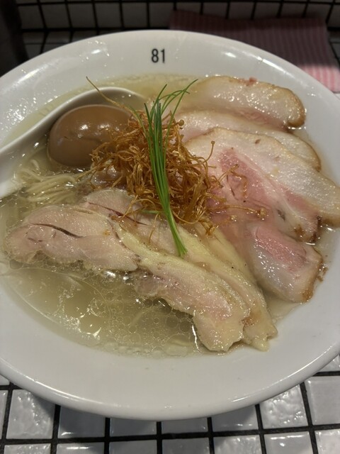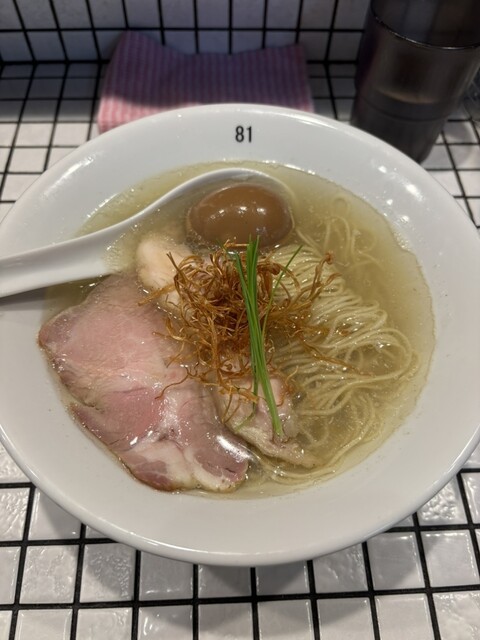 特製塩ラーメンに乾燥エノキ増していただきました。煮卵はバルサミコ酢が香る味付け、乾燥エノキが上品でした。店内8席ほどですが、タイル調でガツガツしてないので、女性1人でも入りやすかったです。