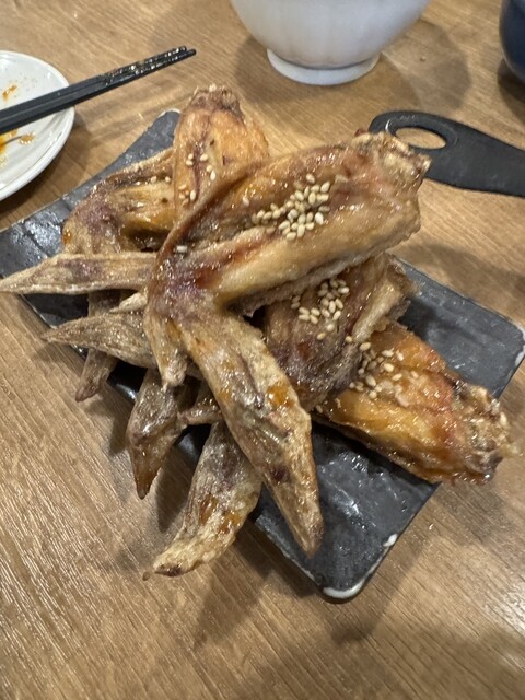 手羽先は定番の甘辛ダレからスパイシーなピリ辛まで揃っており、その日の気分で選ぶのも楽しみのひとつ。甘辛ダレは香ばしく焼き上げられた皮にしっかり絡み、胡麻の香りがふわっと広がる上品な味わい。一方でスパ...