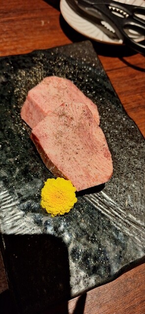 まずは店のお薦め厚切り上牛タンが登場。そのままで美味しいので味付けの必要なし。タンは厚切りの方がタンの美味しさを堪能できていいですね。