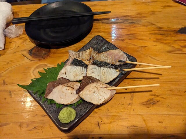 店名通り鮮魚にとことんこだわる海鮮居酒屋で、まず印象的なのは“魚串”という新感覚メニュー。お魚を串に刺して炙った香ばしさと旨味が凝縮された一串は、「これって魚?串?どっちも!」と楽しめるユニークな逸品です。