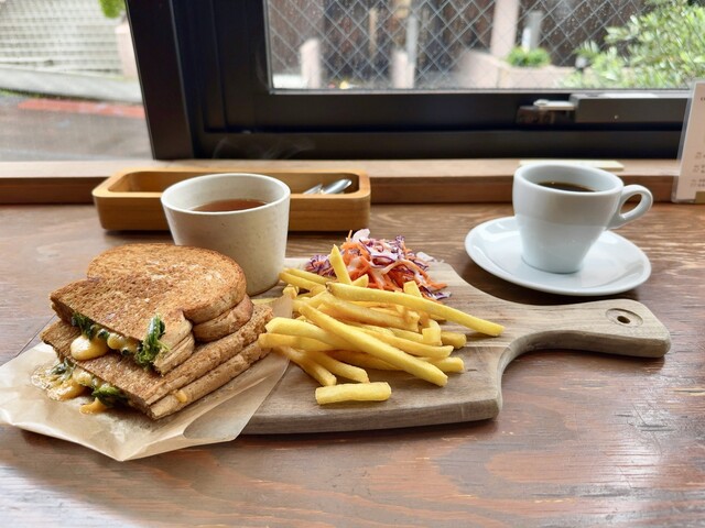 ドリンク1人1杯付き!【グリルドチーズサンド】や【サイドメニュー】も選べる、デザートつき、ショートコース全3皿 2398円-