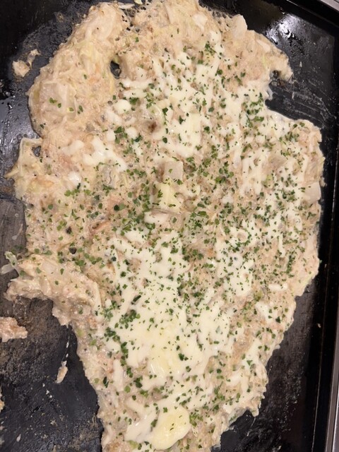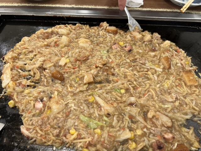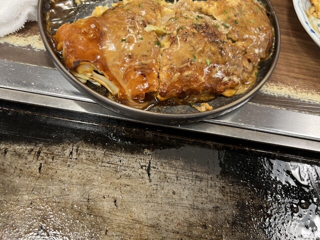 家族で日曜日の夕飯に。もんじゃ3枚、お好み焼き1枚と3人でたらふく頂きました!