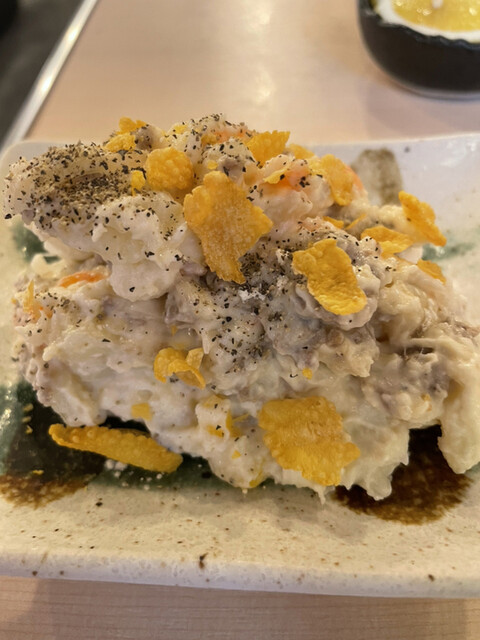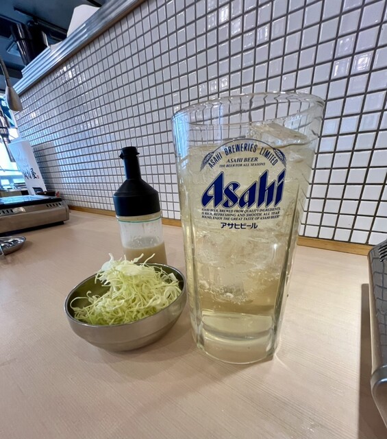 お通しの千切りキャベツと梅干しサワーが到着。変わらずに、 キャベツのおかわりをできるのが嬉しい。ホルモンの前に、キャベツでお腹のコンディションアップ。じゃがいもがゴロゴロのポテトサラダも、お肉への期待を上げてくれる。