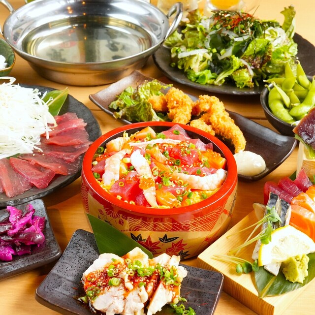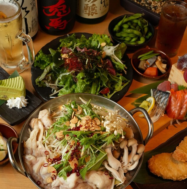 「【時間無制限の飲み放題付き◆5,000円コース】牛もつ鍋・馬刺し・ミナミマグロと鮮魚5点盛などが楽しめる全9品」がおすすめです。