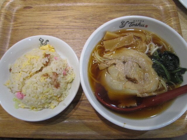 ついつい食べ過ぎるワタシには、半ラーメン、半チャーハン、餃子3個のよくばりセットがちょうどイイ。